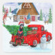 Sticker Carré Doberman Chien en Livraison Noël Camion Neige