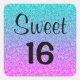 Sticker Carré Douce 16 Seize Ombre bleu rose Parties scintillant