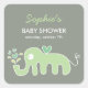 Sticker Carré Douce Fête de Naissance d'Éléphant Vert de Dessin
