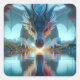 Sticker Carré Dragon Bleu Mystique Reflection dans l'eau