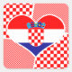 Cet autocollant carré présente le drapeau de la Croatie dans un coeur avec des dames rouges et blanches autour.