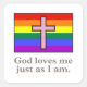 Dites à tout le monde que vous pouvez être à la fois gay et chrétien. Montre le drapeau de la fierté arc-en-ciel, superposé d'une croix rose, avec le slogan "Dieu m'aime comme je suis."