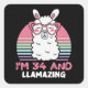 Sticker Carré Drôle adorable Llama 34e cadeau d'anniversaire pou