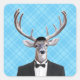Sticker Carré Drôle Yarmulke Happy Hanoukka Deer Blue Plaid