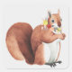 Cet imprimé d'aquarelle présente un portrait mou d'un écureuil avec des fleurs dans la bouche | Par Grace Popp