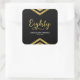 Cet élégant autocollant carré de 80e anniversaire comporte un chevron géométrique moderne et le mot "80" en faux or contre un arrière - plan noir. C'est génial pour une célébration du 80e anniversaire. Consultez les invitations et les éléments correspondants ici http://www.zazzle.com/collections/modern_faux_gold_chevron_celebration_collection-119531050277382712?rf=238364477188679314 Personnalisez-le avec vos détails en remplaçant le texte de l'espace réservé. Pour plus d'options, cliquez sur le bouton "Customiser". *Veuillez noter que le filigrane Zazzle qui apparaît dans l'aperçu du zoom n'apparaîtra PAS sur le produit imprimé final. © Bois de rose et agrumes