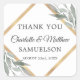 Élégant autocollants de MERCI de mariage / étiquettes avec vert profond, feuilles couleur sauge, branches, feuillage, verdure - thème botanique. Faux cadre en feuille d'or en forme de diamant. Parfait pour toute période de l'année ou thème mariage. Design délicat en feuille aquarellé.