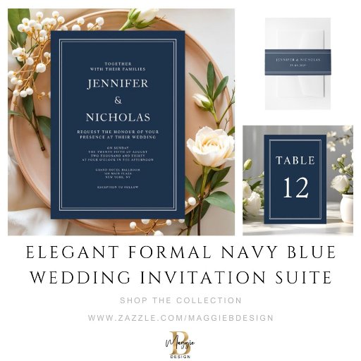 Elegant Formal Navy Blue Wedding Invitation SuiteConçu par Maggie B Design