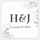 Sticker Carré Élégant Monogrammes de verdure et date