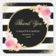 Sticker Carré Élégant noir or rose Mariage Merci rose