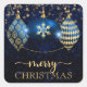 Sticker Carré Elégant Royal Bleu et or Bauble Joyeux Noël