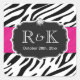 Sticker Carré Elégant Zebra Imprimer Hot Rose Mariage Initiales