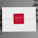 Elegant graduation stickers featuring "Grad" in white calligraphy script with the graduate's name, school, and graduation year displayed below. The red graduation stickers are parfait for sealing envelopes, favor bags, etc.