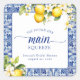 Cette invitation à une fête prénuptiale présente un thème bleu vif avec des agrumes.