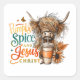Design paisible et coloré avec une scène automne/automne avec un café, des fleurs d'automne, des feuilles d'automne et un taureau. Le texte inspirant et coloré dit : "épice Citrouille et Jésus Christ". Ce design est disponible sur une grande variété de produits.