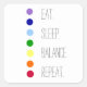 Charmant autocollants minimaliste bien-être avec un simple 7-Chakra graphique et personnalisable "Manger. Dormir. Équilibre. Répéter." message. Un grand cadeau pour les instructeurs de yoga, les massothérapeutes et autres qui pratiquent le bien-être holistique et la méditation.