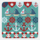 Sticker Carré Eté Thème nautique Ancres Bateaux à voile Helms