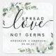 Ce design moderne dit propager l'amour et non les germes dans la typographie script branchée entourée de feuilles eucalyptus. Personnalisez avec vos noms et votre date de mariage.