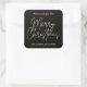 Joyeux Noël dans un faux script de feuille d'or, fait maison pour vous (ou tout message) et vos noms en lettres chic, ces autocollants carrés noirs sont élégants pour toutes les occasions de Noël.