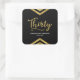 Cet autocollant carré chic présente un élégant chevron géométrique et le mot "Trente" en faux or contre un arrière - plan noir. C'est génial pour une fête du 30e anniversaire. Consultez les invitations et les éléments correspondants ici http://www.zazzle.com/collections/modern_faux_gold_chevron_celebration_collection-119531050277382712?rf=238364477188679314 Personnalisez-le avec vos détails en remplaçant le texte de l'espace réservé. Pour plus d'options, cliquez sur le bouton "Customiser". *Veuillez noter que le filigrane Zazzle qui apparaît dans l'aperçu du zoom n'apparaîtra PAS sur le produit imprimé final. © Bois de rose et agrumes