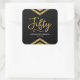 Cet autocollant carré chic présente un élégant chevron géométrique et le mot "Fifty" en faux or contre un arrière - plan noir. C'est génial pour une célébration du 50e anniversaire. Consultez les invitations et les éléments correspondants ici http://www.zazzle.com/collections/modern_faux_gold_chevron_celebration_collection-119531050277382712?rf=238364477188679314 Personnalisez-le avec vos détails en remplaçant le texte de l'espace réservé. Pour plus d'options, cliquez sur le bouton "Customiser". *Veuillez noter que le filigrane Zazzle qui apparaît dans l'aperçu du zoom n'apparaîtra PAS sur le produit imprimé final. © Bois de rose et agrumes