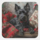 Sticker Carré Festif de Noël écossais Terrier Dog
