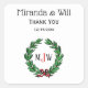 Sticker Carré Festif Noël Noël Noël Holly Wreath Monogramme