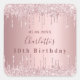 Invitation moderne, élégante et glamour pour la fête du 10e anniversaire d'une fille (ou de n'importe quel âge). Un rose poussiéreux, un arrière - plan rose à l'aspect métallique avec fausse goutte de parties scintillant, la peinture goutte à goutte. Le nom est écrit avec un rose moderne de couleur or foncé à la main écriture style. Pour l'emballage cadeau, favorise ou "enregistrer la date" rappel pour les invités.