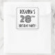 Cet élégant autocollant carré de fête de vingt-huitième anniversaire comporte un nom personnalisé, un style art déco complexe inspiré du numéro "28e", le message "FÊTE D'ANNIVERSAIRE !", et une frontière multiligne. De luxueux autocollants sur le thème de l'anniversaire comme ceux-ci peuvent être utilisés ou distribués lors d'une fête d'anniversaire pour quelqu'un qui célèbre son vingt-huitième anniversaire, ou peut-être utilisés lors de la préparation de cadeaux/cadeaux ou d'invitations pour un tel événement. [~Z0000618]