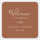 Ces stickers de bienvenue mariage en terre cuite minimale en feuille sont parfaits pour un mariage boho. Le design se compose d'une simple silhouette de feuille de verdure orangée brûlée et minimaliste de style bohème désert. Personnalisez ces autocollants avec l'emplacement de votre mariage, vos noms et votre date de mariage. Ces étiquettes sont parfaits pour les mariages de destination et les sacs de bienvenue des clients de l'hôtel.