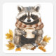 Sticker Carré Feuilles d'automne confortable raccoon avec tasse