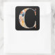 Sticker Carré Feuilles d'automne Lettre modèle C Noir initial