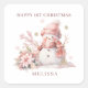 Carte de Noël avec petite fille de neige rose et poinsettia