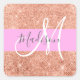 Glam et rose girly, pêche, parties scintillant d'or scintillent le nom de monogramme blanc et autocollant carré initial. Votre nom personnalisé et votre monogramme sont écrits dans un élégant script écrit à la main avec un arrière - plan rose. Vous pouvez modifier la couleur du texte, le style et la taille de police à l'aide de l'option personnaliser. Parfait pour un anniversaire ou une fête de Noël !