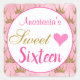Fille et joli rose et or parties scintillant princesse couronne brillamment Sweet sixteen 16 carré autocollant brillant. Vous pouvez facilement ajouter le nom de votre choix et modifier la couleur et la police en utilisant l'option personnaliser !