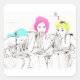 STICKER CARRÉ FILLES MANGEANT SPAGHETTI