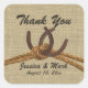 Les fers à cheval et la corde, "cravate le noeud", autocollants rustiques sont parfaits pour les sacs d'accueil et les faveurs. Faux burlap look et style country western design avec texte et styles de police modifiables.