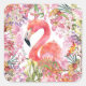 Sticker Carré Flamant rose en Jungle Fleur - Motif d'été