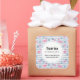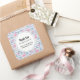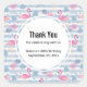 Fête merci stickers avec un motif avec une ambiance estivale amusante. Flamants roses et ananas posés sur un motif rayé bleu clair avec feuilles et coeurs tout autour.