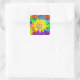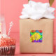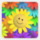 Fleur adorable et mignonne de visage heureux jaune reposant sur un lit de fleurs aux couleurs néons vives. Coloré et gai.