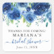Autocollants de remerciement de shower de mariée à fleurs aquarelles bleues marine pour décorer les tables de fête avec une belle écriture élégante.