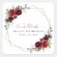 Ajoutez une touche personnelle à votre fête d'anniversaire avec ces objets de fête élégants et mémorables ! Le design présente des fleurs d'aquarelle bordeaux, de la verdure et un cadre doré sur un arrière - plan blanc.
