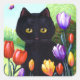 Sticker Carré Fleurs de chats noires mignonnes Tulipes Créationa