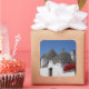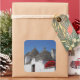Sticker Carré Fleurs de géranium et maisons de trulli à Alberobe