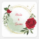 Sticker Carré Fleurs rouges et blanches verdure couronne or