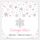 Beau autocollant de premier anniversaire/baby shower sur le thème de l'hiver avec des flocons de neige roses et argentés, des étoiles faux parties scintillant et des sauterelles de confetti