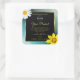 Sticker Carré Floral Turquoise Blue Parties scintillant Noir Pro