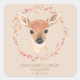 Annonces de naissance d'animaux forestiers pour vos annonces de naissance de bébé pour les amis et la famille. Un cerf de forêt à l'aquarelle douce avec un joli autocollant de feuille de la nature.