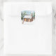 Sticker Carré Forêt d'hiver, cabine de billes, robin, lièvre