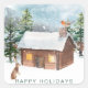 Cette conception représente une aquarelle illustrant la scène des bois d'hiver - les sapins, les cabines-rondins, le rouge-rouge et le lièvre. Vous pouvez ajuster le texte en fonction de vos besoins